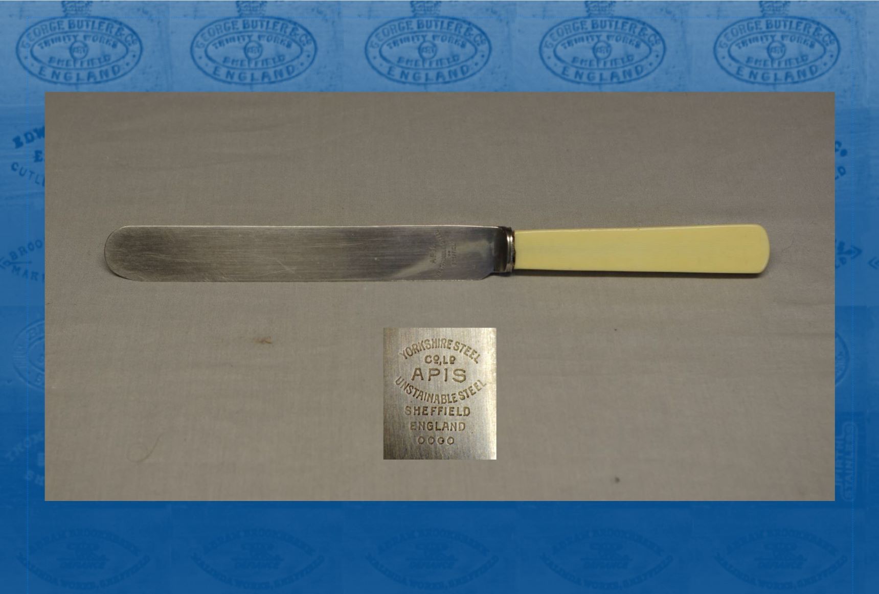 Besides the safety razor, Holt began marketing straight razors, scissors, pocket knives, and table cutlery. These products were advertised in The Ironmonger (London), The American Cutler, and in Australasia, where the company had agents. Cutlery was branded with the initials ‘YSC’ or ‘ORA-NOVA’ on safety razors. ‘APIS’ was stamped on stainless cutlery, which was marked ‘UNSTAINABLE’. It is not known whether Holt’s venture into cutlery was profitable. He died on 3 January 1932 (leaving £71,798) and a few months later Yorkshire Steel Co Ltd was liquidated.