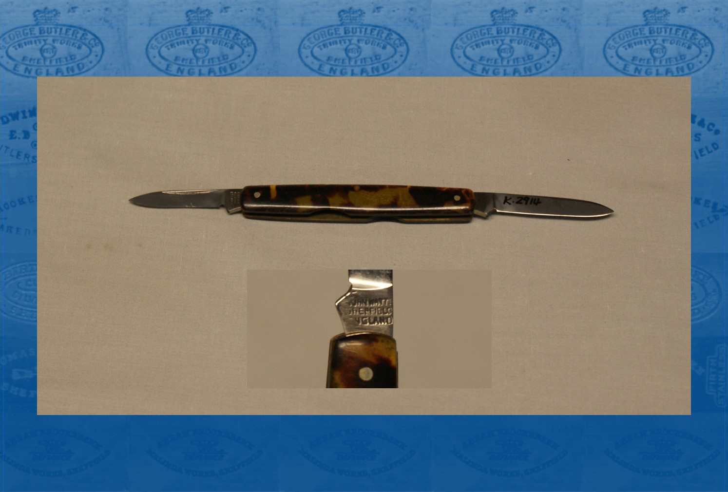 Watts’s son, John Robert Watts (1859-1939), also regarded himself initially as clasp maker. However, he transformed the firm into a fully-fledged cutlery manufacturer, selling pen and pocket knives, razors, besides graining combs, skates and clasps, and stampers and piercers. By the First World War, Watts had acquired most of the courtyard workshops at the lower end of Lambert Street. These included the premises of George Gill. The firm also began buying up trade names, including the ‘B4*ANY’ mark of Frederick Ward; the ‘MANHATTAN’ mark of John Newton & Co; and the name ‘H. T. JOHNSON’, which had passed from Johnson, Spencer & Co to John Newton.