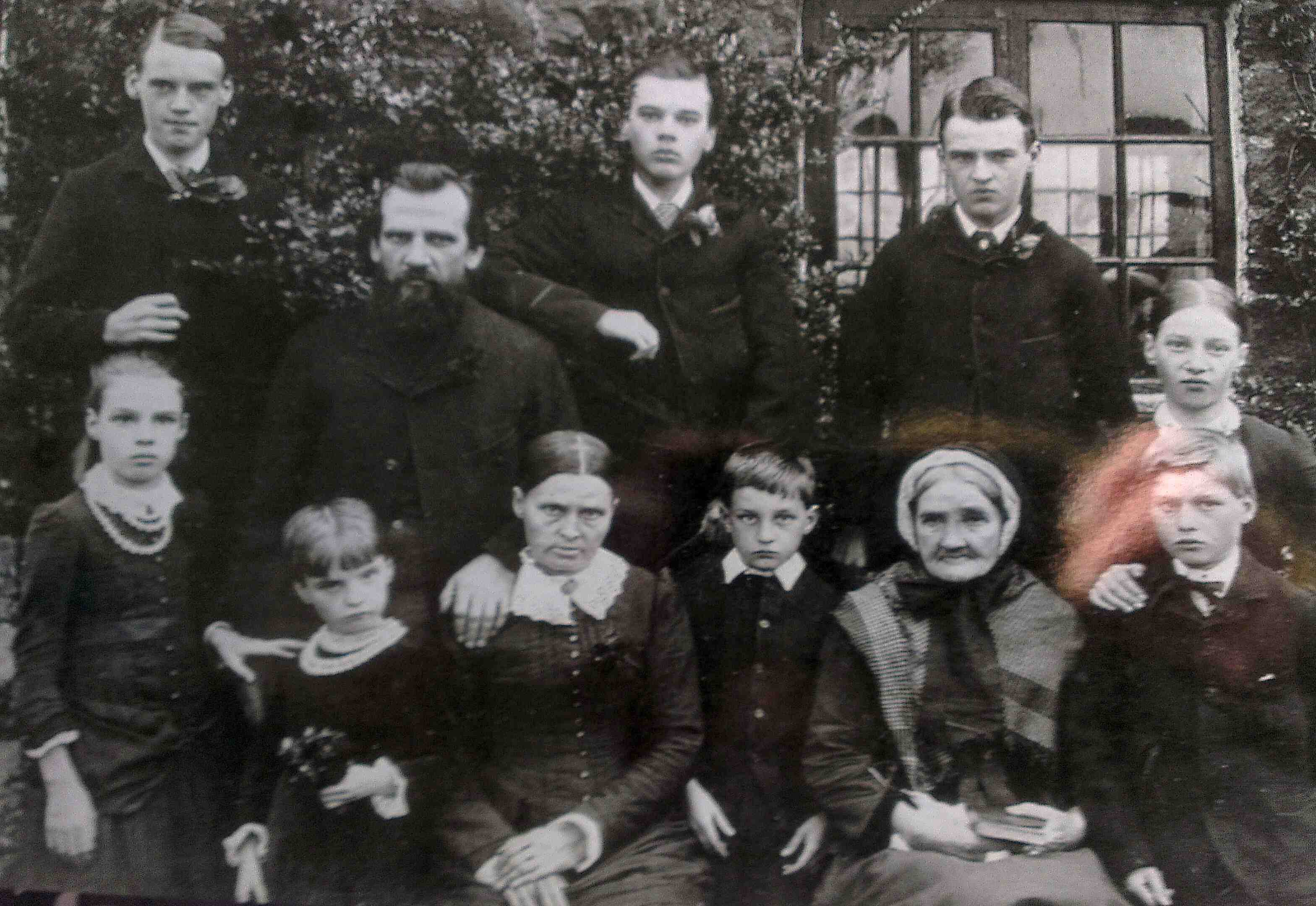 The family photograph shows William (centre back) leaning on the his father, George’s shoulder.