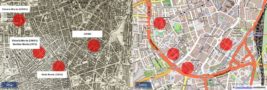 James Allen & Co remained at Arundel Street until after the War. In the early 1920s, the firm moved to Nella Works, Forge Lane (Hereford Street) with Harry James Allen as the sole owner. Nella Works (‘Allen’ reversed) was a finisher of cutlery, rather than a manufacturer, and made extensive use of outworkers. These numbered between thirty and forty in the early 1920s. Their tasks included buffing cutlery (such as electro-plate fish eaters) and spoon and fork filing. The cheaper varieties of stainless table knives were marketed, usually with xylonite handles, and marked ‘RUST-PROOF CUTLERY’ and ‘FIRTH STAINLESS’. Harry James Lansdowne Allen, of Nether Edge Road, died on 20 August 1933 at South Yorkshire Mental Hospital. He was aged 60 and left £261. He was buried at Abbey Lane Cemetery.