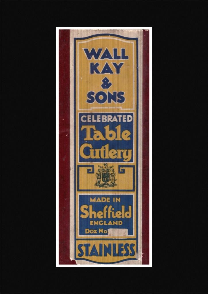 The principals were Samuel Wall (1854-1913) and James Kay (1862-1935). Samuel Wall was the son of Thomas, a saw smith, and his wife, Mary. He began as a table knife hafter and was working on his own account by 1881, when he lived in Allen Street. James Kay was also a table knife cutler. The year 1875 was later stamped on cutlery as a start date for the partnership, but directory listings did not appear until later.