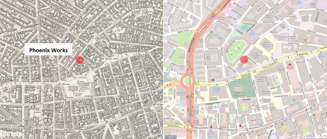 A manufacturer of table and spring knives, John Simkins Bradley Baker was listed in Solly Street in 1868. He was born in Mansfield, Nottinghamshire, in about 1845, and was probably the son of Joseph (a shoemaker) and Eliza Baker. John first worked in a cutlery warehouse. Later he described himself as a master cutler. In the 1870s, he was at Wheeldon Works, Wheeldon Street, and lived in Red Hill. Baker’s advertisement in the 1879 directory highlighted table cutlery. By 1883, John Baker & Co was selling electro-plate (a silver mark was registered in 1890). Baker lived in Brook Place, Brookhill, and then Slinn Street. In 1885, he bought the Phoenix mark of Horrabin for £52 and the workshops in Wheeldon Street became Phoenix Works. He also used the ‘MERIT’ (acrobat) and ‘SHEPHERD’ marks.
