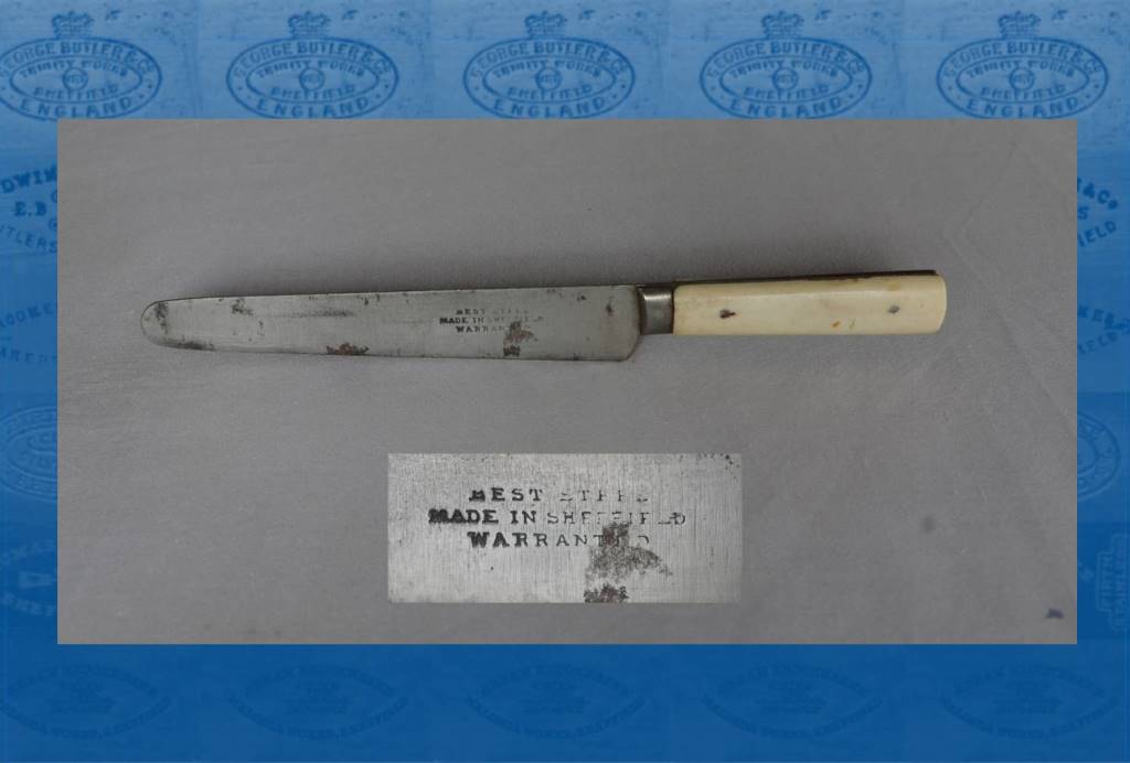 The Sheffield business passed to John S. Bramhall, who became a Freeman in 1823. In 1827 at Bristol, J. S. Bramhall married Eliza, the only daughter of John Winter. The family lived at Dam House, Crookesmoor. James was a secretary of the Sheffield Shakespeare Club, which had been founded in 1819 to pay convivial homage to the poet and playwright. In 1831, Bramhall’s premises at Solly Street were offered ‘to let’ or for sale. This was part of a permanent move to Bristol, where Bramhall was also running a hardware shop at Bridge Street. However, in 1837 he filed for insolvency in Bristol and sold the house and shop at Bridge Street. He turned to farming by buying first Cote Farm, Westbury-on-Trym, but then moved to Sneed Park Farm, Durdham Down, near Bristol. ‘Agriculture’ was his stated occupation in the 1841 Census. He died at Sneed Park on 21 April 1843, aged 49, and was buried at Holy Trinity church, Westbury-on-Trym. His cutlery marks –‘anchor and diamond’ and ‘anchor and olive leaf’ – were offered for sale in The Sheffield Independent, 19 May 1849.