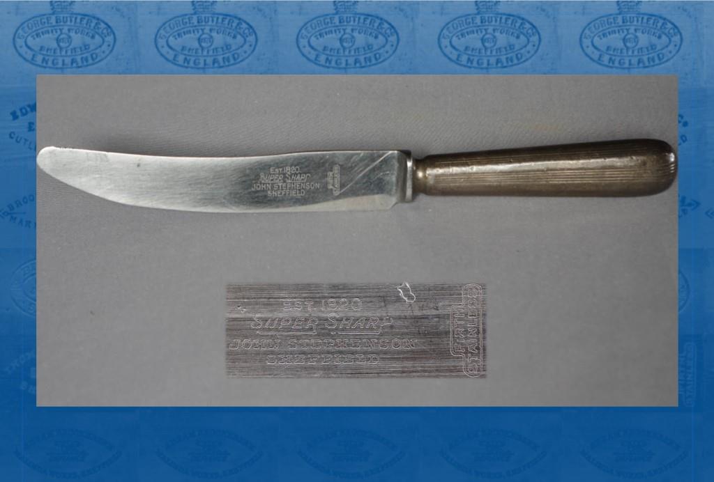 John Stephenson (1852-c.1904), who was born near Hull, operated a cutlery hire business in Paradise Street by the 1890s. It continued into the interwar years and branched into supplying cutlery canteens to retailers. During the War, John’s son, Alfred Mansell Stephenson (1901-1978), occupied Louvic Works, 44 Garden Street. Alfred made army jack knives with Lawrence Wilson. They parted in 1950. Alfred and his son, Derek, continued at Garden Street as directors of John Stephenson (Cutlers) Ltd (silverware) and Stephenson & Wilson Ltd (gift penknives and letter openers). In 1979, Derek sold the silverware business to John Price (see Arthur Price). Stephenson & Wilson was sold in 1992 to the long-serving Billiard family. It closed in 2005 and the name was acquired by Egginton.