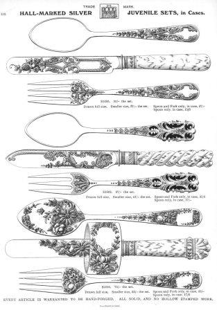 By 1895, the firm was Hammond, Creake & Co, based at 63 St Mary’s Road, and manufacturing (or factoring) a wide range of silverware and electro-plate. Hammond is unidentified and the firm’s cutlery was sometimes simply marked ‘CREAKE’. An early speciality was oak-mounted goods (such as biscuit boxes): hence Oak Works. A trade catalogue (in the author’s possession) shows, inter alia, tea and coffee services, cruets (also depicted in the company trade mark), fish carvers, cased cutlery, juvenile sets, and pocket silver fruit-knives. In 1898 and 1899, the firm was prosecuted (and fined) for employing child labour (Sheffield Independent, 19 January 1899).