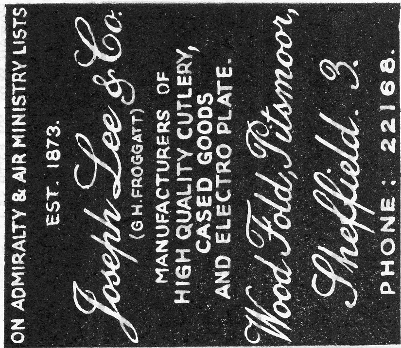 In 1938, Froggatt offered for sale at auction Froggatt Edge; and also put Emu Works on the market (though the sale of the latter was withdrawn). In the following year, Froggatt accepted an offer for Froggatt Edge from the Council for the Preservation of Rural England, which gifted it to the National Trust. Froggatt’s industrial activities during the War are not known in detail, though it was said he continued to run his engineering firm and also became head of a company manufacturing light fittings (Quality, November 1966). By 1951 (after he had lost his town council seat), he was operating Joseph Lee & Co as a ‘high-class’ cutlery manufacturer at Wood Fold, Pitsmoor. Froggatt also owned Fiberloid, which had been based at that address since the 1920s. Both firms were vehicles for Froggatt’s experiments in designing and manufacturing table knives. He died at his home Froggatt Bungalow, Froggatt, Derbyshire, on 23 November 1966, aged 84. He left £20,628. Joseph Lee & Co and Fiberloid became defunct.
