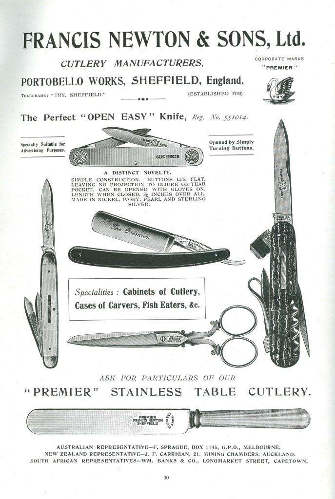 Francis Newton was apparently baptised at Sheffield parish church on 1 January 1796, the son of Francis, a grocer, and his wife, Hannah. The grocery business was in Campo Lane. Francis Sen. died in 1804. In 1811, Francis Jun. joined John Middleton, who had established a cutlery business in West Street in 1793. Eventually, Newton took over the firm. By 1821, he partnered John Greaves in Greaves & Newton, merchant / manufacturer of table, pen, pocket and pocket knives, razors, and brass f....