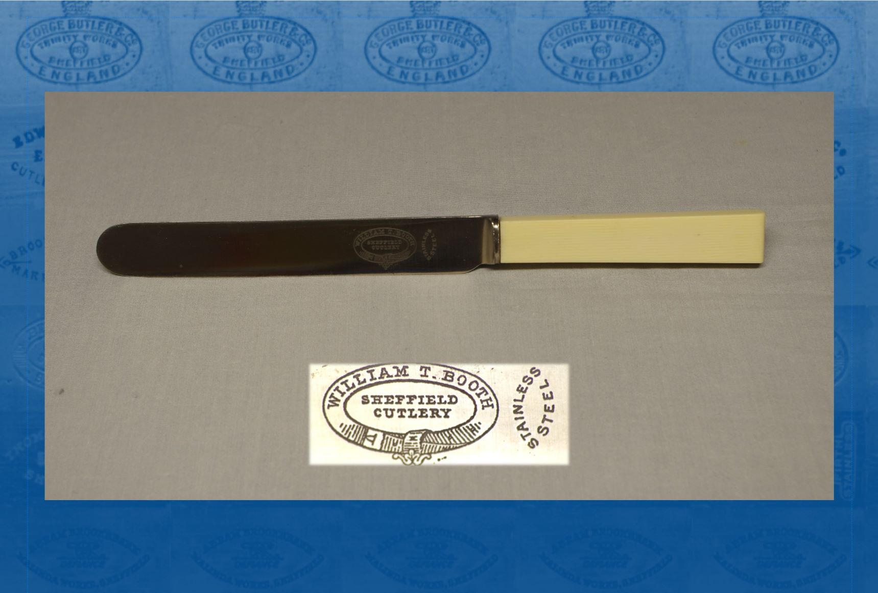William Thomas Booth (1876-1955) was born at Sheffield, the son of Samuel Booth (a saw maker) and his wife, Martha. The family lived at Fulwood As a teenager, William worked as an apprentice at a merchant’s warehouse. By 1901, he was a ‘table blade warehouseman’. He graduated to cutlery manager within the next decade. In 1919, William (who resided at Norton Woodseats) was listed as a cutlery manufacturer at Hope Works, Well Lane. The factory was situated at the back of So....