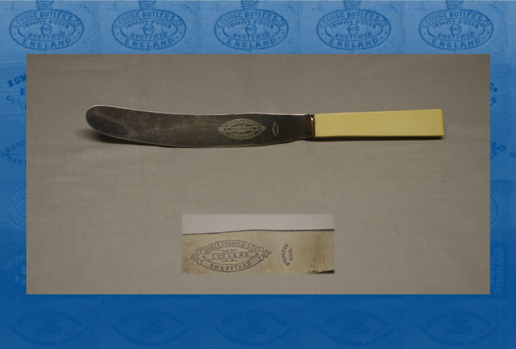 We believe this knife was made in Sheffield however we have not been able to identify the manufacturer or the brand so far.If you have any information about the knife or the maker, please share it with us via enquiries@hawleytoolcollection.com....
