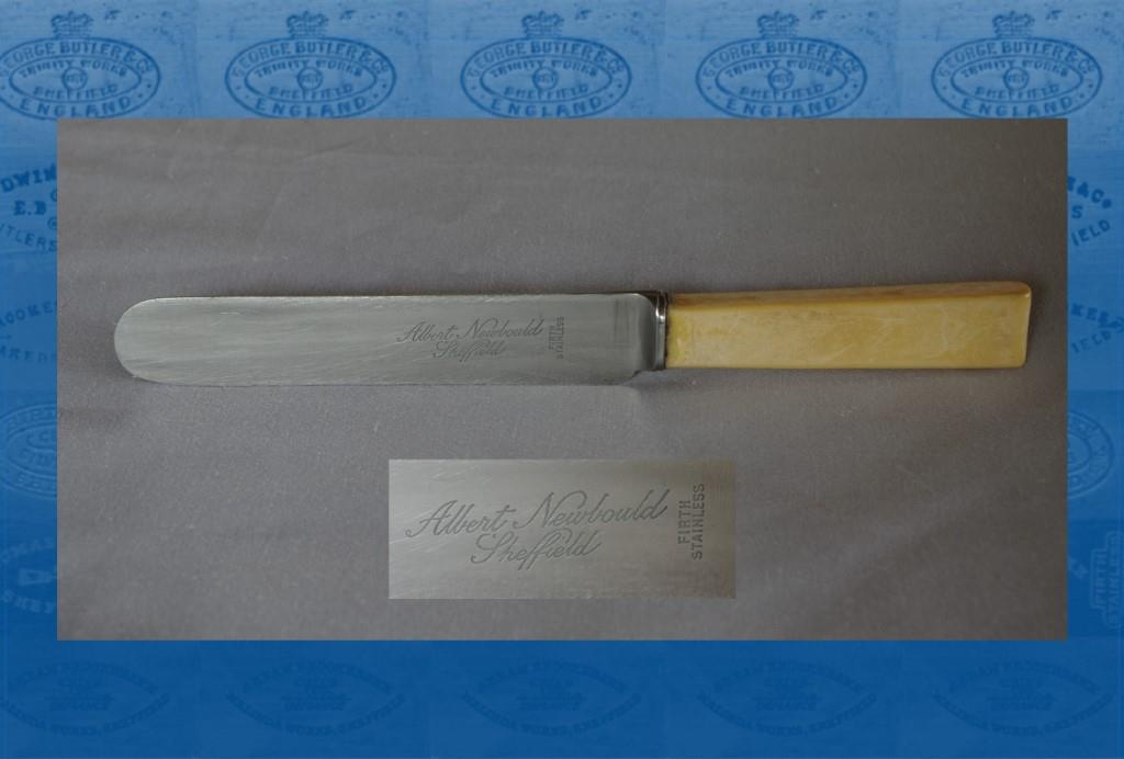 Albert Newbould was listed as a cutlery manufacturer in 1925 at John Street. He continued to trade until 1930, when his address was Club Gardens Walk. But the name disappeared from directories in the early 1930s.The owner has yet to be identified with certainty. The London Gazette, 13 August 1915, recorded the dissolution of a partnership between Albert Newbould and John Hopkinson (partners in J. & F. Hopkinson and Penton Cutlery Co). But it is unclear whether this was the later ‘Albert Newbould’. ....