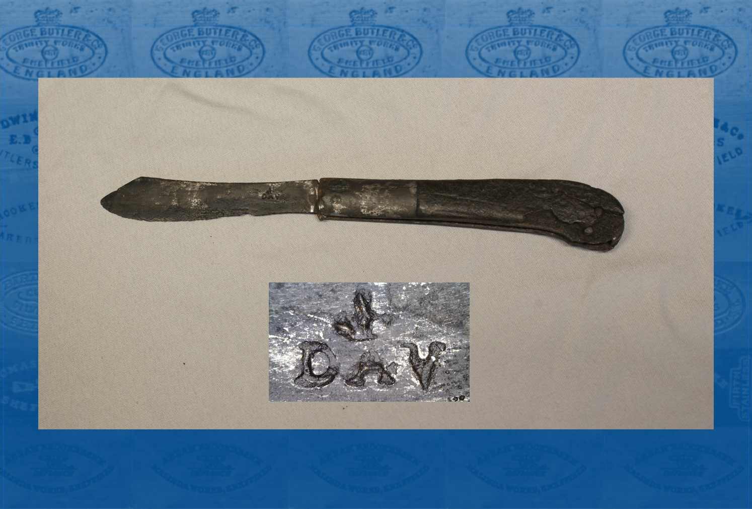 This old knife was recovered from the River Thames in the Queenhithe area and is believed to have been made c1750s. The mark on the knife indicates that it was made in Sheffield by Obadiah Crookes however the age of the knife means that we are unable to definitively identify this knifemaker. ....