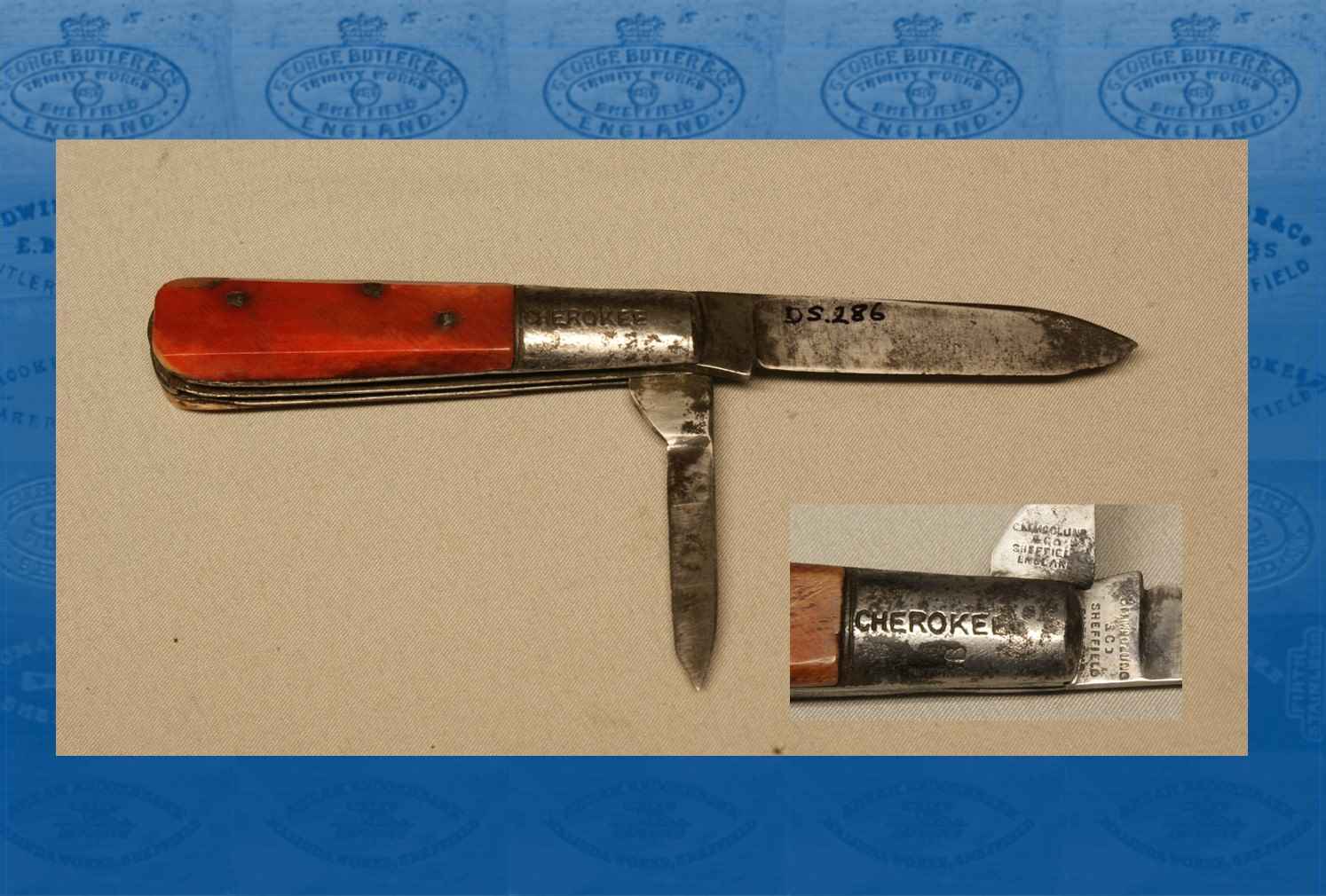 This Barlow-style pocket-knife (see Obadiah Barlow) was made in Sheffield (or in one of its outlying villages) by an unknown maker for an American company: C. M. McClung & Co. This firm was a hardware merchant in Knoxville, Tennessee, which was owned by Calvin Morgan McClung (1855-1919). It became one of the largest wholesale hardware firms in the American South. ‘CHEROKEE’ was one of its brand names. This knife was probably made in about 1900. ....