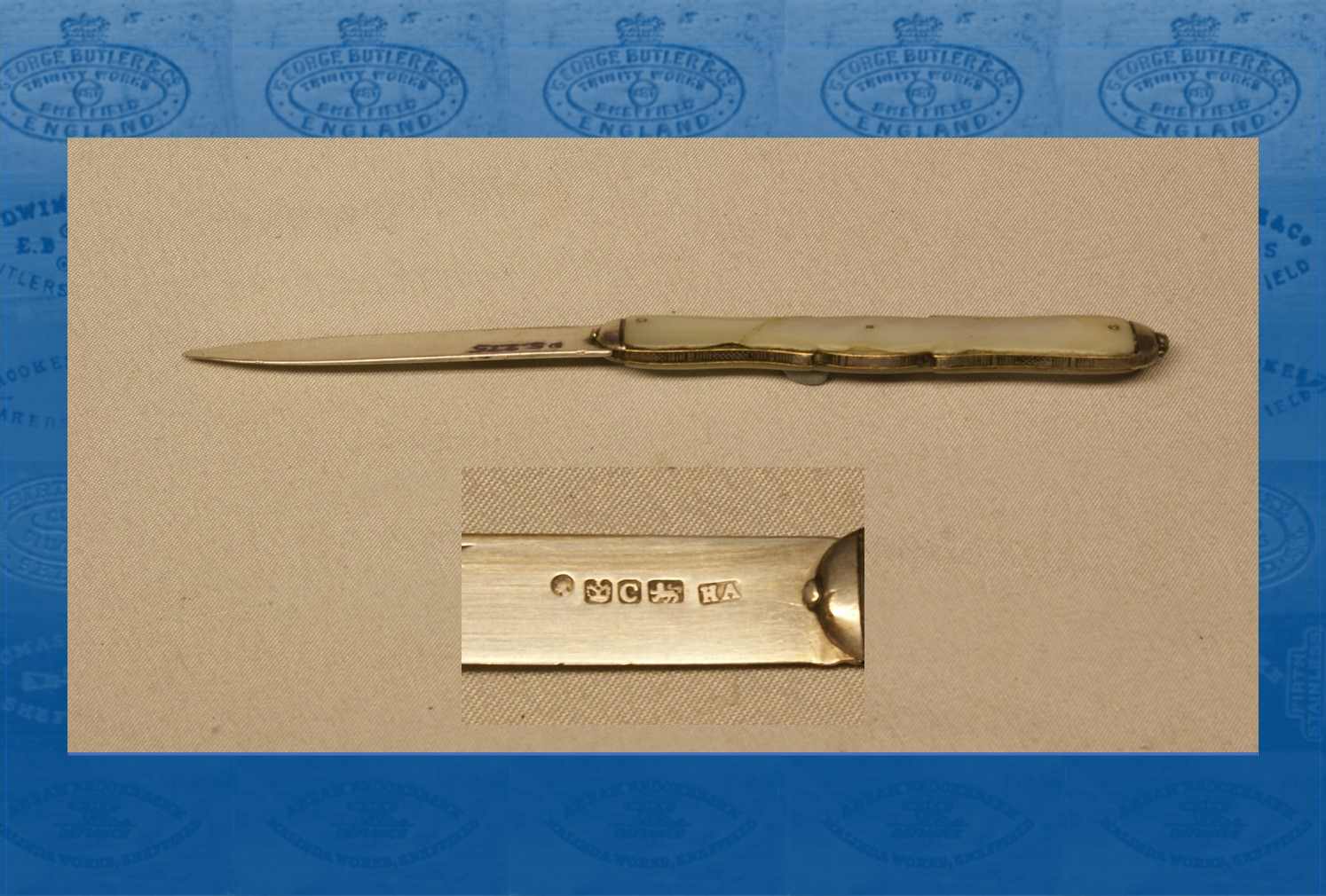 The hallmarks on this Sheffield silver fruit-knife denote a date of 1870 and the maker as Henry Archer (1830-1919). He was from a family of silver chasers, who worked at Hill Street. Henry was trained at the School of Art; found a job at Howard & Hawksworth; and then started business as a silversmith in Fargate. In 1854, the silver mark ‘HA’ was registered by Archer, Machin & Marsh from Whitaker’s Yard, Fargate. In the following year, ‘HA’ was registered by Archer....
