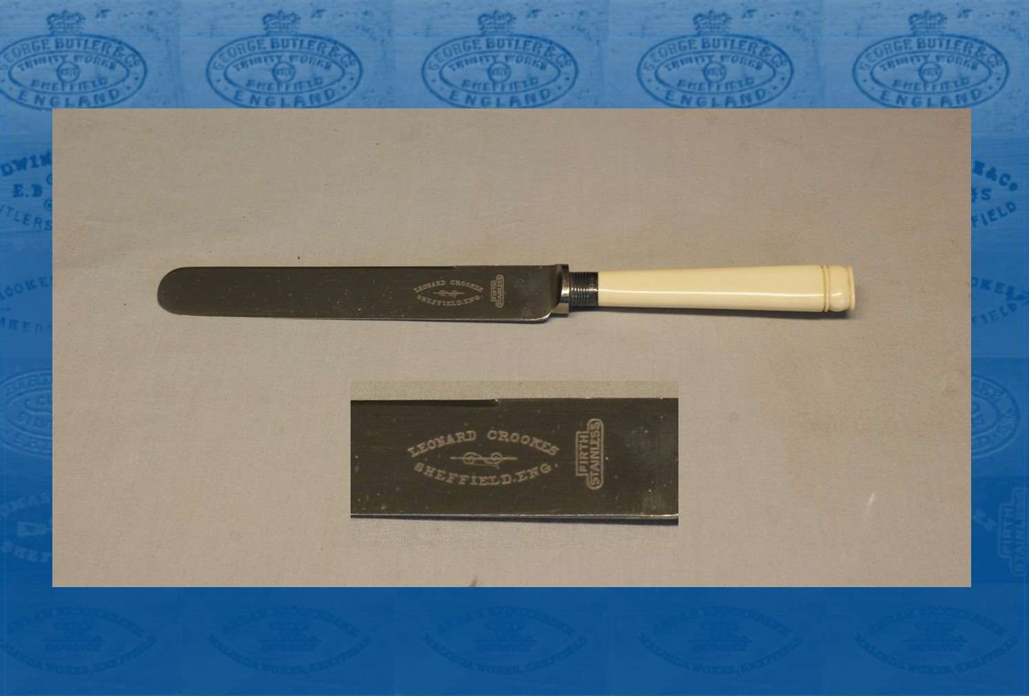 Leonard Crookes (1870-1947) was born on 8 August 1870 in the Owlerton district, then outside the Sheffield boundary and part of the West Riding of Yorkshire. His parents were Thomas, a saw grinder/smith, and Sarah Crookes. Leonard had two older brothers, Thomas and Albert, who were both silversmiths and he followed them into the trade as a silver engraver. On 3 July 1910 he married Elizabeth Line, the 27 year old daughter of George and Sarah Ann Line, at Wadsley Church. Elizabeth was a cabinet case liner.The 1911 Census reco....