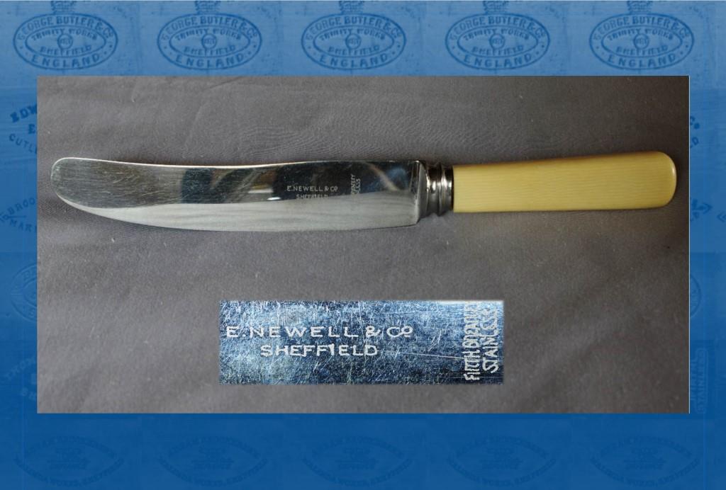 By the mid-1920s, Newell’s had relocated to 226 Solly Street. Thomas Newell died at the hospital in Herries Road on 5 July 1929, aged 72. He left £1,229 to his widow, Mary Ann. After 1934, the firm’s address was 124 Scotland Street. In 1950, Newell’s advertised in The Ironmonger Diary a wide range of cutlery: spoons and forks, fish and fruit eaters, pen knives, cased goods, and bread and table knives. The firm survived into the 1960s but had apparently ceased business by 1965.