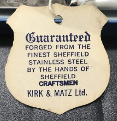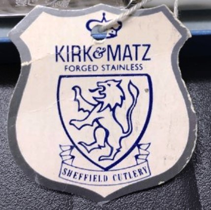 Kirk & Matz was an American cutlery importer with Sheffield links. The business can be traced to Herman Victor Matz (1913-1970), who had been born at Staten Island, New York. His wife, Ruth Kaethe Wirsing (1917-2013), came to America from Dresden, Germany, before the War. In 1940, they were living in New York, where Herman was an export clerk at an asbestos company and Ruth was a secretary at a cutlery concern. In the early 1950s, Herman operated the Peerless Tool Company in New York. He also developed links with Sheffield, especially with Frederick Arthur Kirk. The latter owned F. A. Kirk. Herman Matz moved to Danbury, Connecticut, and in 1962 Kirk’s Ltd was established with a Danbury address. Matz imported Sheffield cutlery from Kirk – an arrangement that was formalised in 1967, when the name of Kirk’s Ltd was changed to Kirk & Matz Ltd. Herman Matz was a director, alongside Frederick Arthur Kirk and his son, Anthony Kirk.