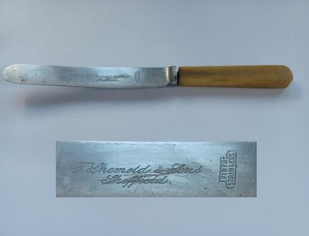 Thomas Shemeld died at his home at Neill Road on 9 February 1915, aged 85, and was buried at Walkley. According to the Sheffield directory (1919), T. Shemeld & Sons was at Albany Works, Radford Street. Stainless knives marked ‘T. Shemeld & Sons’ have survived. But the relationship of this firm to the earlier Shemeld enterprises is unclear. It did not appear in directories after 1919 and no information has been found on its owners.