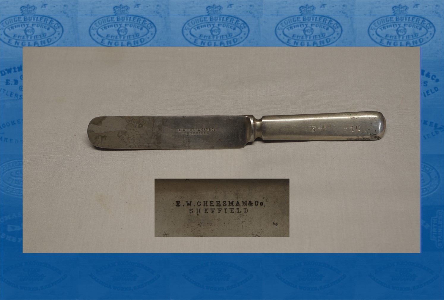 Ernest W. Cheesman (1870-1943) was born at Higham, Kent, the son of Henry (a shoemaker and later cordwainer) and his wife, Emily. Ernest trained as a clerk and by 1901 had moved to Sheffield, where he lived at Springvale Road with his wife, Eliza née Woodward and their son, Quintin. The family had moved to Leeds by 1911, where Ernest was a bookkeeper for a cabinet maker. Cheesman had no experience in cutlery manufacture: nevertheless, during the First World War, E. W. Cheesman & Co began trading at Exchange Works, Egerton Street. The enterprise was involved in the finishing stages of the manufacture of solid handle table knives and forks. After 1915, Cheesman’s regularly advertised for staff – usually women and girls – for buffing and glazing table knives, and grinding forks. In 1918, Cheesman’s was fined £3 in each case for employing two women and two girls on night shifts, contrary to the regulations. The firm had been fined previously for neglecting to have female staff medically examined (Sheffield Daily Telegraph, 27 August 1918).