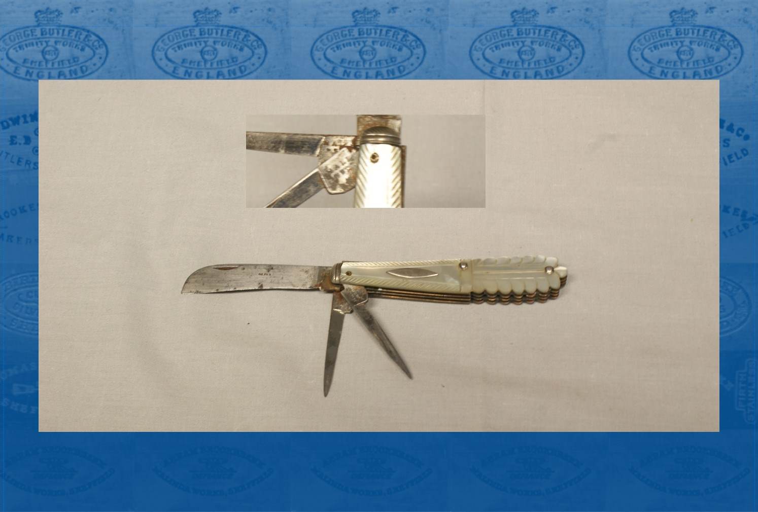 John Hall (c.1780-1861) was a pen and pocket knife cutler in Corn Hill – a road which intersected with Edward Street (which was also sometimes listed as Hall’s address). Hall was listed in directories in these streets after 1822. In 1841, the enterprise was listed ‘& Son’, then ‘& Sons’ after 1845. In the Census (1841), John Hall (cutler) was enumerated in Edward Street, living with his wife Sarah and two sons, Henry and Frederick. Next door was Thomas Hall and his family. The latter was a pocket blade maker and may have been another son. The business was not listed after 1852 – the year in which John’s wife, Sarah, died. She was buried in Portobello on 28 November, aged 64. In 1861, John Hall described himself in the Census as a retired cutlery manufacturer. He died on 27 May 1861 at his residence in West Street. His age was stated as 81 in the press obituary; and 79 in the General Cemetery register. He left under £1,500.