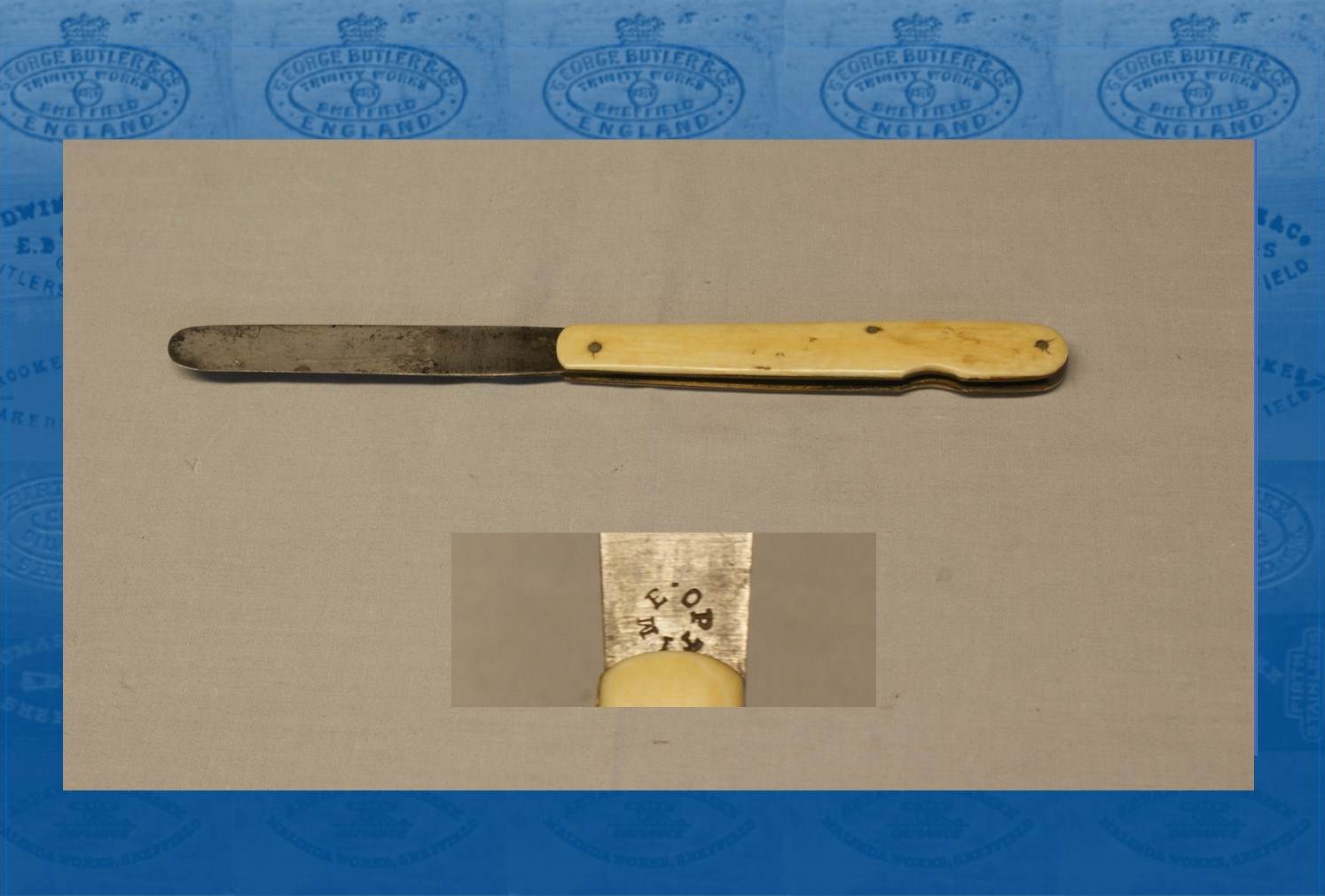 Edwin Terry was born in Nottingham in 1846. By 1861, he was an apprentice to his uncle, James Dodworth, a palette knife maker. Terry stated that he began business in 1864. In 1868, he was a commission agent in Devonshire Street. By the 1870s, he was a manufacturer of palette, gilders’, and plumbers’ knives in West Hill Lane, Devonshire Street. By 1881, he had nine workers. In about 1889, Terry bought Dodworth’s Reliance Works, Bolsover Street. His palette and other trade knives were marked ‘OPTIME’ and ‘RELIANCE’ and sold in the UK, the Continent, and increasingly the Colonies. Edwin Terry died on 26 September 1912, aged 66, at Oakcroft, Ranmoor, and was buried in Ecclesall. He left 11,337. His son, Edwin Henry Terry (1872-1928), took control. Terry’s became a private limited company in 1927, with £3,500 capital (£2,300 in ordinary shares; £1,200 in preference shares). The firm continued at Bolsover Street under Edwin’s son, James Edwin (1897-1960). By the 1950s , Terry’s had abandoned cutlery for hand tools. It was wound up in 1961.