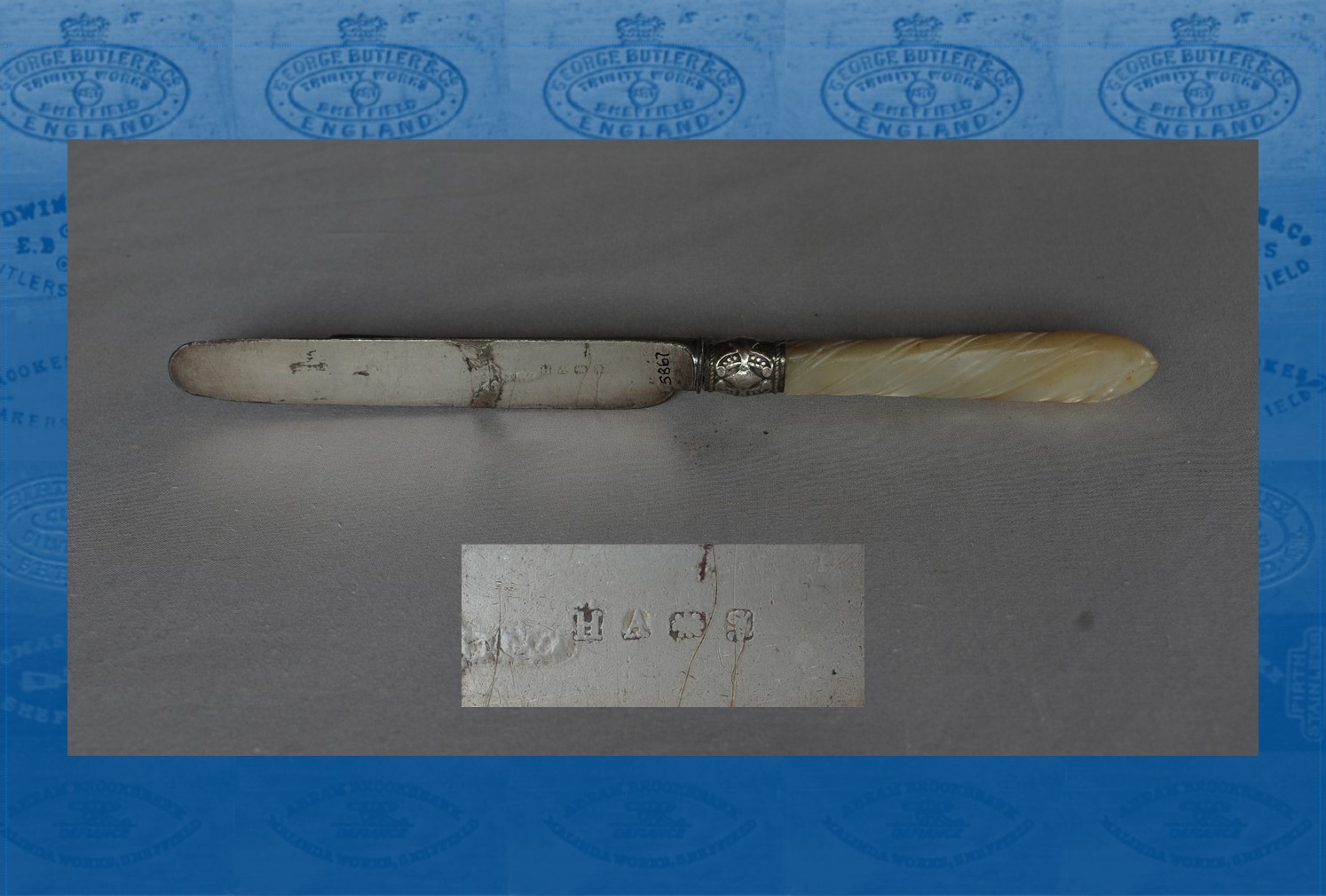 In 1825, Law & Oxley was listed as a manufacturers of silver and plated dessert and fruit knives, pearl buttons, 100 Eyre Street. It was styled ‘late John Law & Sons. The partners were Joseph Law and Henry Atkin (1804-1853). The latter was the son of George (a cutler) and Elizabeth. In March 1824, Joseph Law had registered a silver mark; in October, this was followed by a silver mark for Joseph Law, John Oxley, and Henry Atkin at Eyre Street. In 1829, Joseph Law withdrew. He may have been the silversmith, who died on 31 December 1837, aged 54, and was buried at St Paul’s. Atkin, Oxley & Co continued until 1841, when Henry Atkin registered a silver mark from Howard Street. He died on 13 February 1853, aged 48, and was remembered as ‘a man of superior intelligence and sound judgment’, whose personal friends included ‘some of the most notable individuals of his day’ (Sheffield Independent, 19 February 1853). His gravestone is at Underbank Unitarian Chapel. In 1828, Henry had married Mary née Wright. Their sons formed Atkin Bros.