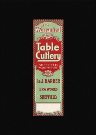 A ’faithful servant’ of the firm for over sixty years was Edward Cumberlidge (1825-1897), who was buried in the Barber family grave in the General Cemetery. By 1900, I. & J. Barber was at Era Works in Wheeldon Street, Red Hill. May Ann died on 27 March 1901, aged 50, and was buried at Ecclesall. She left £40,110. Her son, James (b.1874), was running the firm. He lived in Parker’s Road and at The Grange, Sandygate, though by 1911 his address was in Stumperlowe Avenue. In 1911, Barber’s acquired the name of James Barlow & Sons. Before 1914, the Barber name / mark passed to Thomas Ellin in Sylvester Street. After the War, ‘EXCELSIOR’ (also associated with Hides and Wostenholm) appeared in the company’s advertising. Barber’s was listed in Sylvester Street (as part of Joseph Elliot) until the 1970s.