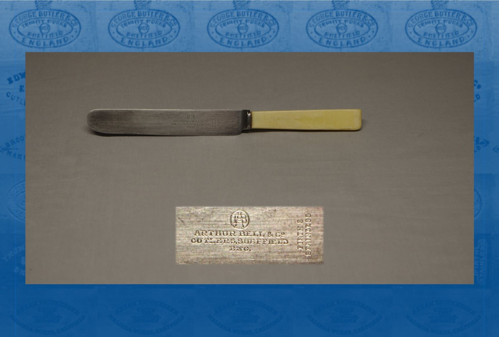 Arthur Bell (c.1849-1925) was born in Sheffield, the son of Matthew Bell. Arthur became a cutlery manager – possibly working for his father – but by 1871 was listed as a table knife manufacturer in West Street. Arthur Bell & Co, Columbia Works, West Street, appeared in a list of Bowie knife makers in a directory (1876). Arthur’s firm disappeared from directories, though he continued as a cutlery manager. In 1911, he was again listed as a ‘cutlery manufacturer’, who traded as Samuel Hancock & Sons at Sheffield Ivory Works, Rocking-ham Street. This was not S. Hancock & Son, of ‘Mazeppa’ fame, but a separate entity. Bell then disappeared from directories. To add to a complicated story, in 1923 an advertisement appeared offering for sale H. W. Edghill & Co Ltd, of High Holborn, which incorporated Arthur Bell & Co, of Granville Street (Sheffield Daily Telegraph, 7 July 1923). In the following year, Arthur Bell & Co Ltd was registered as a private limited company, with £1,000 capital, at Granville Street. It was described as a cutlery manufacturer, which had been organised to take over the business carried on by A. Bell, of Alderson Place, H. A. Bell, and H. Roper as ‘Arthur Bell & Co’s Successors’. The new subscribers were A. Bell and E. F. Glover, a Liverpool export merchant. The directors were A. Bell and others (Sheffield Daily Telegraph, 18 January 1924). However, Arthur Bell died at his residence in Alderson Place on 22 November 1925, leaving £415. The firm apparently became defunct.