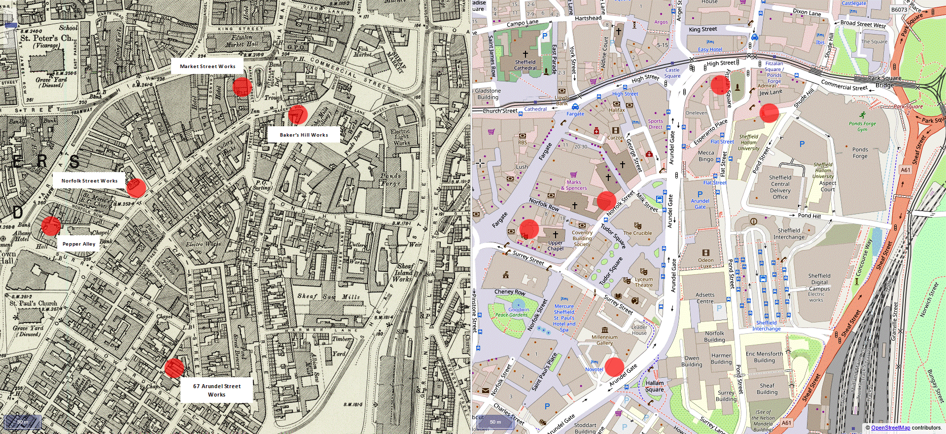 By 1918, Cowlishaw’s name had been acquired by Arthur Theodore Smith (1874-1962). When the trade in silver fruit-knives was hit by stainless steel, Smith adapted by selling folding scissors and a folding knife / fork / spoon combination. Cowlishaw’s (later a limited company) was based at various addresses in the twentieth century: Napier Street, Harrow Street, and Matilda Street. Arthur T. Smith, of Osberton Place, Cowlishaw Road, died on 22 December 1962, leaving £1,879. Emil Berek later owned the name. The firm was still listed as a cutler at Portland Works, Hill Street, in the early 1970s.