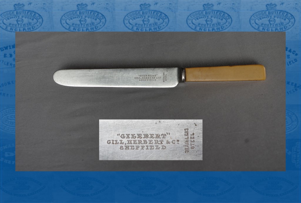 Gill, Herbert & Co struggled. In about 1927, it relocated to Wheeldon Street. Its former premises (including office, warehouse, and two stockrooms) were offered to let. Gill, Herbert began to sell bread knives with serrated edges and carved wooden handles. But the Wheeldon Street operation soon folded. In 1932, the partners sold up. The sales notice showed that it was a factoring rather than manufacturing business. It had buffing spindles and buffs, but most of the other items were office-related: safe, desks, and a typewriter (Sheffield Daily Telegraph, 8 October 1932). Botham may have left Sheffield: a cutlery dealer of that name was living at West Hartlepool in 1939. He died in 1967.