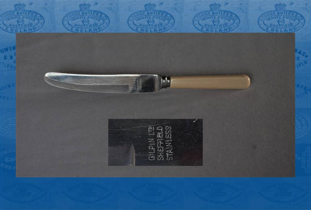 The firm had premises at Denby Street during the War, from where it advertised for ‘roughers’ for spoons and forks. Many of the firm’s earliest contracts for these items were from the government. After the War, Gilpin’s relocated to Universe Works, Mary Street (this was also the location of Smith, Seymour. Gilpin used Osborne’s ‘ABBEY’ mark, besides ‘T. G. Ltd’. In 1951, Tom Gilpin was listed as a director of Abbey Plate & Cutlery Co, a spoon and fork manufacturer at 89 Carver Street. In 1962, Gilpin’s was apparently bought by Jewish entrepreneur Albert Smith (of Smith, Seymour). Tom Gilpin died on 28 May 1967, aged 86; David Tom Gilpin on 4 August 1975, leaving £8,918. The Gilpins lived at Totley. The family graves are at Christ Church, Dore.