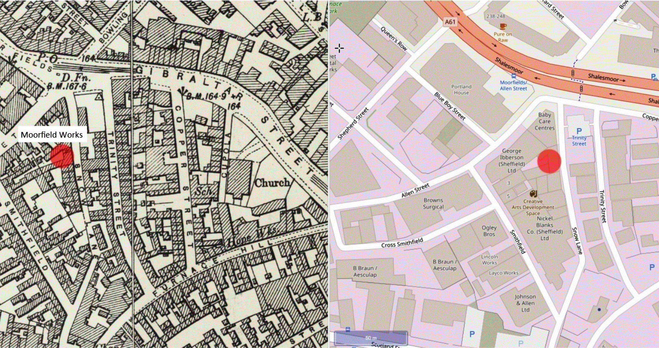 The firm was incorporated in 1920, with £25,000 capital. Samuel continued to run Hale Bros Ltd and Hale & Pennington (steel stockholders); and travelled to South America until at least 1926. He died on 14 February 1948, leaving £79,555. The firm produced stainless table knives marked ‘INOXIDABLE’ and (in Spanish) ‘NO SE MANCHA’. In the twentieth century, the company produced (or marketed) a range of mass-produced cutlery, including pocket and utility knives, from Snow Lane. In 1969, Hale Bros was acquired by the Kutrite Group. The latter continued to list Hale Bros Tools as a maker of painters’ tools as late as 1972. The factory can still be seen in Snow Lane – little changed from the nineteenth century, though its crucible furnaces were dismantled when Kutrite took over. A makeover as residential property was planned in 2022.